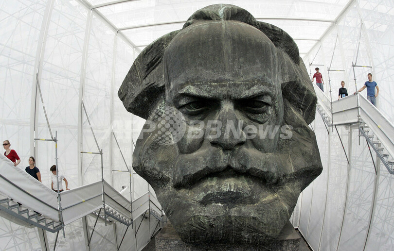 【6月19日 AFP】ドイツ東部ケムニッツ(Chemnitz)で17日、ドイツの経済学者兼哲学者カール・マルクス(Karl Marx)の高さ13メートルの頭像が、仮設の大型テント施設「Temporary Museum of Modern Marx(現代マルクス仮設美術館)」に登場した。