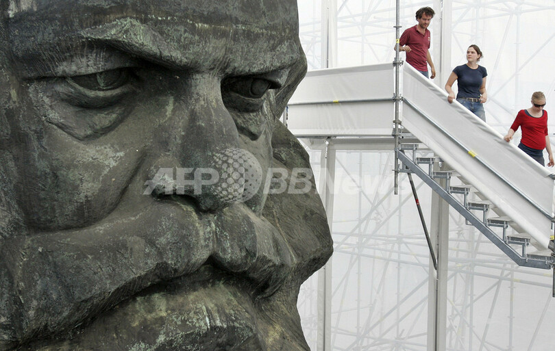 このマルクス像は、旧ソ連の彫刻家Lew Kerbelの作品。1971年に当時カール・マルクス・シュタット(Karl-Marx-Stadt)と呼ばれたケムニッツで、初めて公開された。(c)AFP