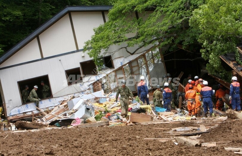 【6月18日 AFP】14日に発生した岩手・宮城内陸地震の際、土砂崩れで埋まった宮城県栗原市の旅館「駒の湯温泉」から18日、新たに女性1人の遺体が発見され、同地震による死者は11人になった。また、同日被災地を視察した福田康夫(Yasuo Fukuda)首相は、全力を挙げて支援することを被災者らに約束した。