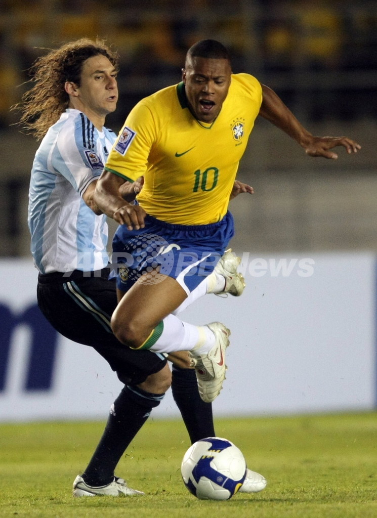 スポーツ サッカー ブラジル ホームでアルゼンチンとスコアレスドローに終わる 2008年6月19日 12:50 発信地:ベロオリゾンテ/ブラジル [ 中南米 ブラジル ] このニュースをシェア ‹ › ❮ 20/21 ❯ アルゼンチンのファブリシオ・コロッチーニ(%%Fabricio Coloccini%%、左)のディフェンスにバランスを崩すブラジルのジュリオ・バプティスタ(%%Julio Baptista%%)。(2008年6月18日撮影)(c)AFP/ANTONIO SCORZA 画像作成中 ! 【6月19日 AFP】2010年サッカーW杯南アフリカ大会(2010 World Cup)・南米予選・第6節、ブラジル対アルゼンチン。試合はスコアレスドローに終わった。(c)AFP サッカー 一覧へ> メディア・報道関係・法人の方向け 写真・動画 購入のお問合せ>