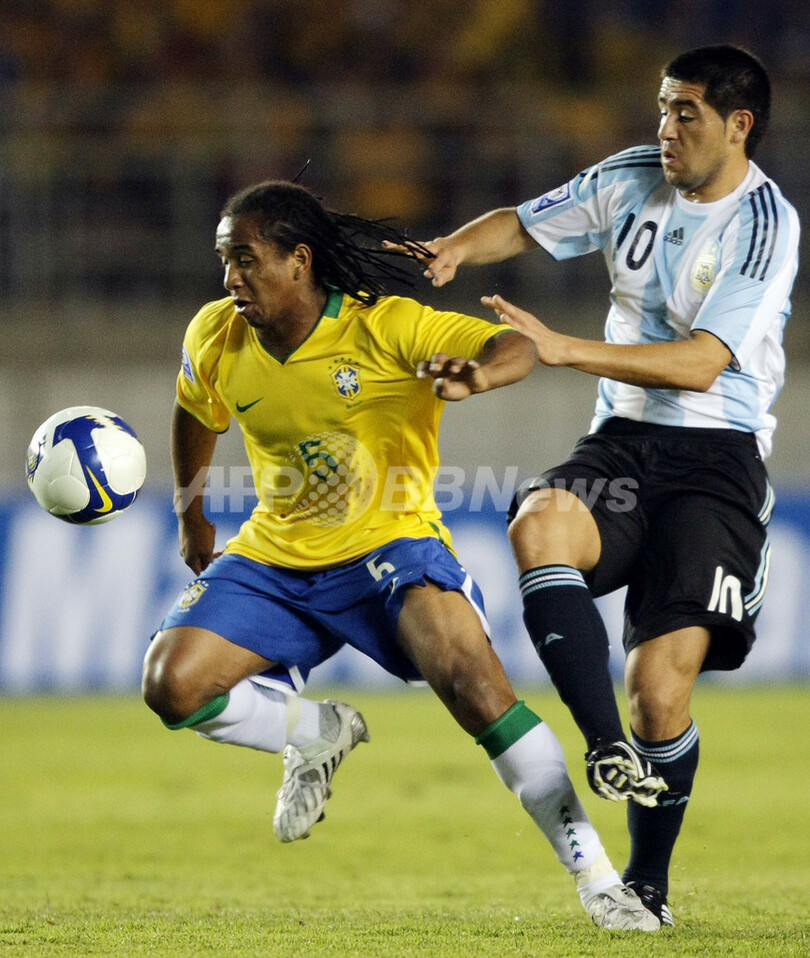 スポーツ サッカー ブラジル ホームでアルゼンチンとスコアレスドローに終わる 2008年6月19日 12:50 発信地:ベロオリゾンテ/ブラジル [ 中南米 ブラジル ] このニュースをシェア ‹ › ❮ 12/21 ❯ アルゼンチンのファン・ロマン・リケルメ(%%Juan Roman Riquelme%%)を抑えボールをコントロールするブラジルのアンデルソン(%%Anderson Oliveira%%)。(2008年6月18日撮影)(c)AFP/ANTONIO SCORZA 画像作成中 ! 【6月19日 AFP】2010年サッカーW杯南アフリカ大会(2010 World Cup)・南米予選・第6節、ブラジル対アルゼンチン。試合はスコアレスドローに終わった。(c)AFP サッカー 一覧へ> メディア・報道関係・法人の方向け 写真・動画 購入のお問合せ>