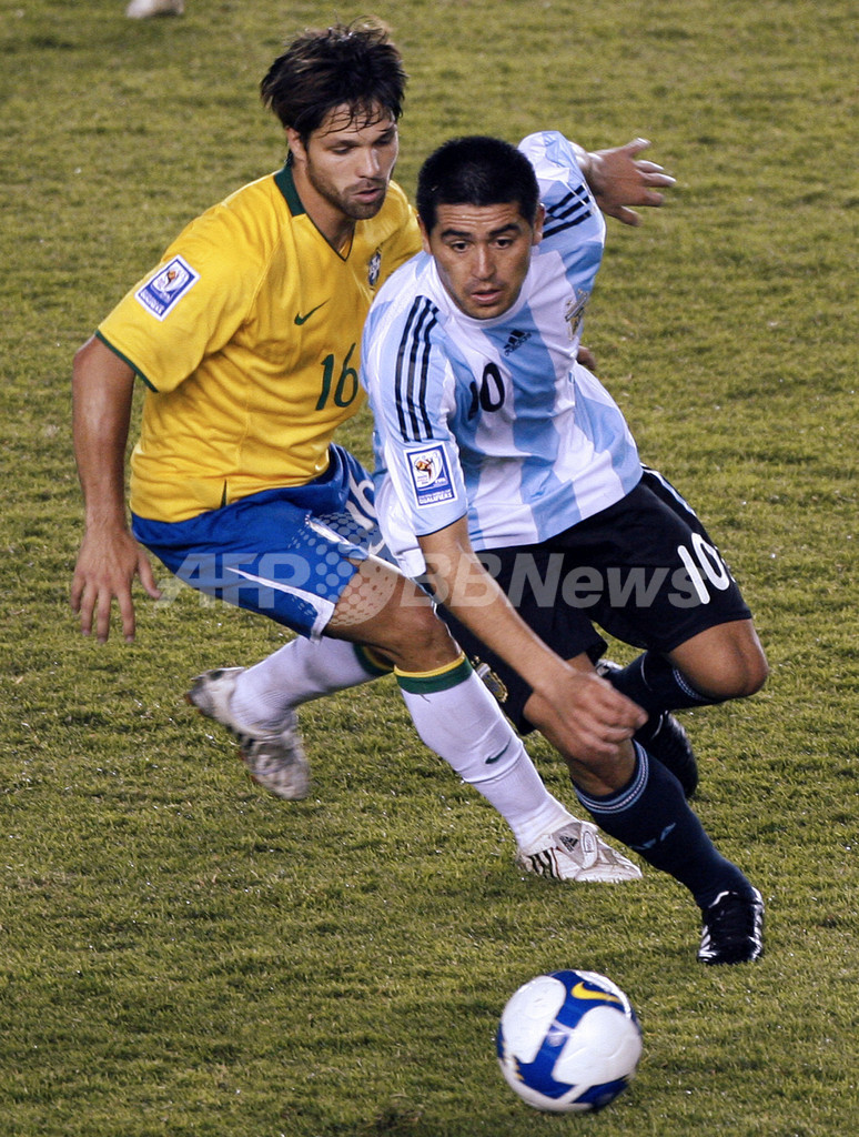 スポーツ サッカー ブラジル ホームでアルゼンチンとスコアレスドローに終わる 2008年6月19日 12:50 発信地:ベロオリゾンテ/ブラジル [ 中南米 ブラジル ] このニュースをシェア ‹ › ❮ 8/21 ❯ ブラジルのジエゴ・リバス(%%Diego Ribas%%)をかわすアルゼンチンのファン・ロマン・リケルメ(%%Juan Roman Riquelme%%)。(2008年6月18日撮影)(c)AFP/Evaristo SA 画像作成中 ! 【6月19日 AFP】2010年サッカーW杯南アフリカ大会(2010 World Cup)・南米予選・第6節、ブラジル対アルゼンチン。試合はスコアレスドローに終わった。(c)AFP サッカー 一覧へ> メディア・報道関係・法人の方向け 写真・動画 購入のお問合せ>