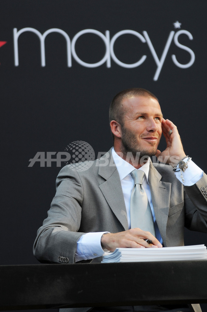 【6月20日 AFP】米カリフォルニア・サンフランシスコ(San Francisco)の百貨店大手メーシーズ(Macy's)で18日、デビッド・ベッカム(David Beckham)選手がモデルを務める「エンポリオ アルマーニ アンダーウェア(Emporio Armani Underwear)」の巨大な広告が登場した。これを記念して同日、ベッカム選手を迎えたイベントが開かれた。(c)AFP/Getty Images