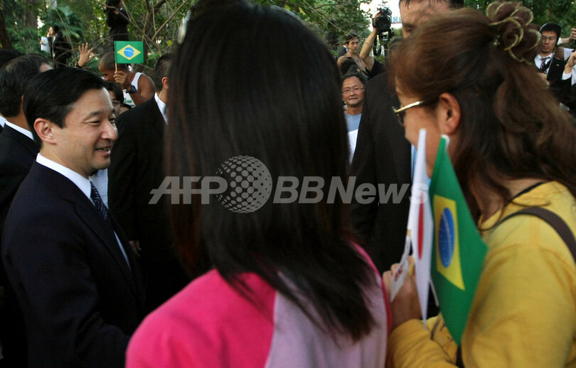 皇太子さまは20日、日系人児童と会見した後、同市内の移民史博物館を訪問。翌21日には、サンパウロ州の日系ブラジル人ゆかりの場所を訪問し、日本文化に関するパレードを視察される。(c)AFP/Marc Burleigh