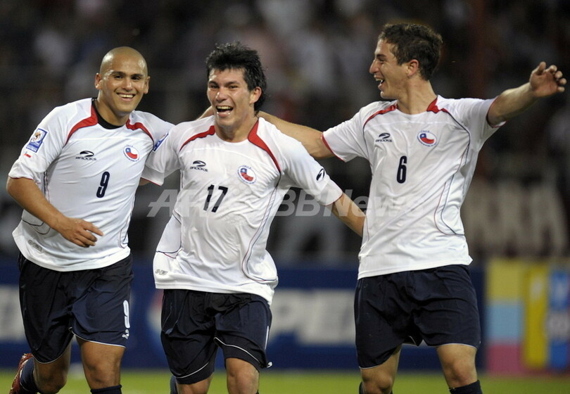 スポーツ サッカー チリ アウェーでベネズエラに勝利 2008年6月20日 14:17 発信地:プエルト・ラ・クルス/ベネズエラ [ 中南米 ベネズエラ ] このニュースをシェア ‹ › ❮ 2/6 ❯ 後半45分に勝ち越しゴールを決めてカルロス・カルモナ(%%Carlos Carmona%%、右)とガリー・メデル(%%Gary Medel%%、中央)から祝福を受けるチリのウンベルト・スアソ(%%Humberto Suazo%%)。(2008年6月19日撮影)(c)AFP/Juan Barreto 画像作成中 ! 【6月20日 AFP】2010年サッカーW杯南アフリカ大会(2010 World Cup)・南米予選・第6節、ベネズエラ対チリ。試合はチリが3-2でベネズエラを下した。(c)AFP サッカー 一覧へ> メディア・報道関係・法人の方向け 写真・動画 購入のお問合せ>