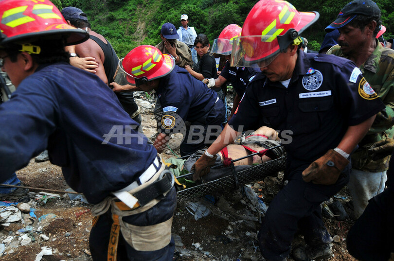 ニュース 社会 ごみの山で地滑り、7人死亡20人行方不明 グアテマラ 2008年6月21日 18:10 発信地:グアテマラ市/グアテマラ [ 中南米 グアテマラ ] このニュースをシェア ‹ › ❮ 5/12 ❯ グアテマラの首都グアテマラ市(Guatemala City)のごみ捨て場で、遺体を搬出する消防士ら(2008年6月20日撮影)。(c)AFP/Eitan Abramovich 画像作成中 ! 【6月21日 AFP】(一部訂正)中米グアテマラの首都グアテマラ市(Guatemala City)で20日、市内最大規模のごみ捨て場で巨大なごみの山が地滑りを起こし、少なくとも7人が死亡、20人が行方不明となった。現地消防当局が明らかにした。(c)AFP 社会 一覧へ> メディア・報道関係・法人の方向け 写真・動画 購入のお問合せ>