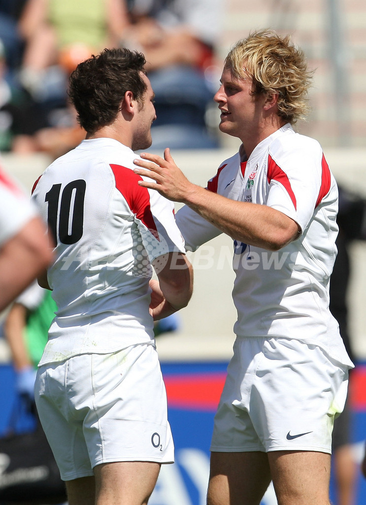 スポーツ ラグビー イングランド・サクソンズ チャーチル杯カップファイナル制す 2008年6月22日 9:46 発信地:シカゴ/米国 [ 北米 米国 ] このニュースをシェア ‹ › ❮ 7/7 ❯ トライを決めライアン・ランブ(%%Ryan Lamb%%、左)から祝福を受けるイングランド・サクソンズのジョーダン・クレイン(%%Jordan Crane%%)。(2008年6月21日撮影)(c)AFP/Getty Images/Jonathan Daniel 画像作成中 ! 【6月22日 AFP】(一部訂正)ラグビー、バークレイズ・チャーチル・カップ2008(Barclays Churchill Cup 2008)カップファイナル、イングランド・サクソンズ(England Saxons)対スコットランド(Aチーム)。試合はサクソンズが36-19でスコットランドを下した。(c)AFP/Getty Images ラグビー 一覧へ> メディア・報道関係・法人の方向け 写真・動画 購入のお問合せ>