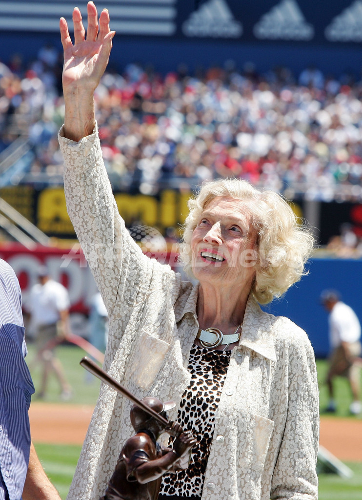 【6月22日 AFP】08MLB、ニューヨーク・ヤンキース(New York Yankees)のアレックス・ロドリゲス(Alex Rodriguez)は21日、シンシナティ・レッズ(Cincinnati Reds)との試合前に各シーズンの本塁打王に贈られるベーブ・ルース本塁打賞(Babe Ruth Home Run Award)をベーブルース氏の娘であるジュリア・ルース・スティーブンズ(Julia Ruth Stevens)さんから授与された。(c)AFP/Getty Images