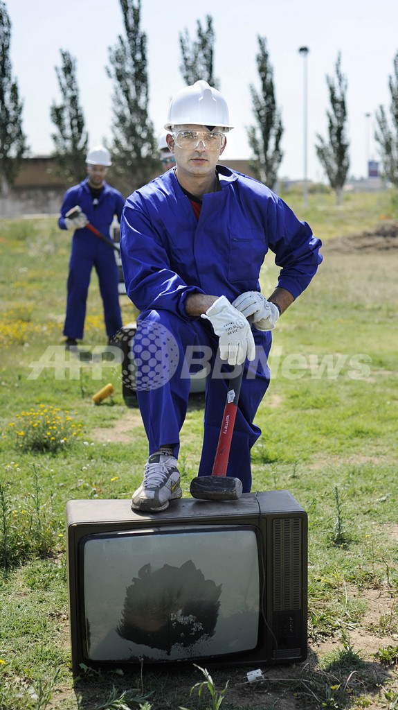 ニュース ライフ こぼれ話 「破壊セラピー」、ハンマーで自動車や家電を破壊 スペイン 2008年6月22日 21:20 発信地:カステヨン/スペイン [ ヨーロッパ スペイン ] このニュースをシェア ‹ › ❮ 6/10 ❯ スペイン北部カステヨン(Castejon)で開催された「破壊セラピー」参加者(2008年6月21日撮影)。(c)AFP/RAFA RIVAS 画像作成中 ! 【6月22日 AFP】スペイン北部の村カステヨン(Castejon)で21日、ハンマーで自動車や冷蔵庫、洗濯機やテレビを破壊する「破壊セラピー」が開催され、約60人が参加した。「ストップ・ストレス(Stop-Stress)」が主催した。(c)AFP ライフ 一覧へ> メディア・報道関係・法人の方向け 写真・動画 購入のお問合せ>