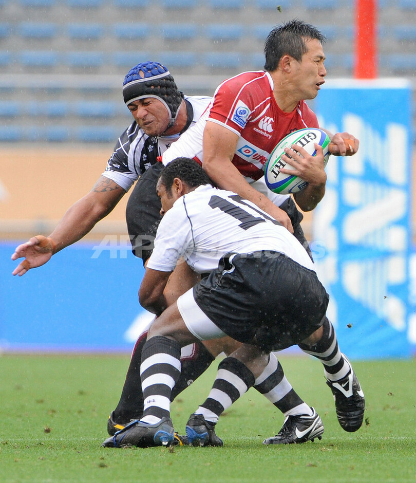 スポーツ ラグビー 日本 パシフィック・ネーションズ杯2敗目 2008年6月23日 8:18 発信地:東京 [ アジア・オセアニア 東京 ] このニュースをシェア ‹ › ❮ 1/9 ❯ フィジーのワイセア・ルヴェニヤリ(%%Waisea Luveniyali%%)とアザ・ラトゥヴァ(%%Aca Ratuva%%、左)からタックルを受ける日本の小野澤宏時(%%Hirotoki Onozawa%%)。(2008年6月22日撮影)(c)AFP/TORU YAMANAKA 画像作成中 ! 【6月23日 AFP】ラグビー、IRBパシフィック・ネーションズカップ2008(IRB Pacific Nations Cup 2008)日本対フィジー。試合は日本が12-24でフィジーに敗れ、日本は通算成績を1勝2敗とした。(c)AFP ラグビー 一覧へ> メディア・報道関係・法人の方向け 写真・動画 購入のお問合せ>
