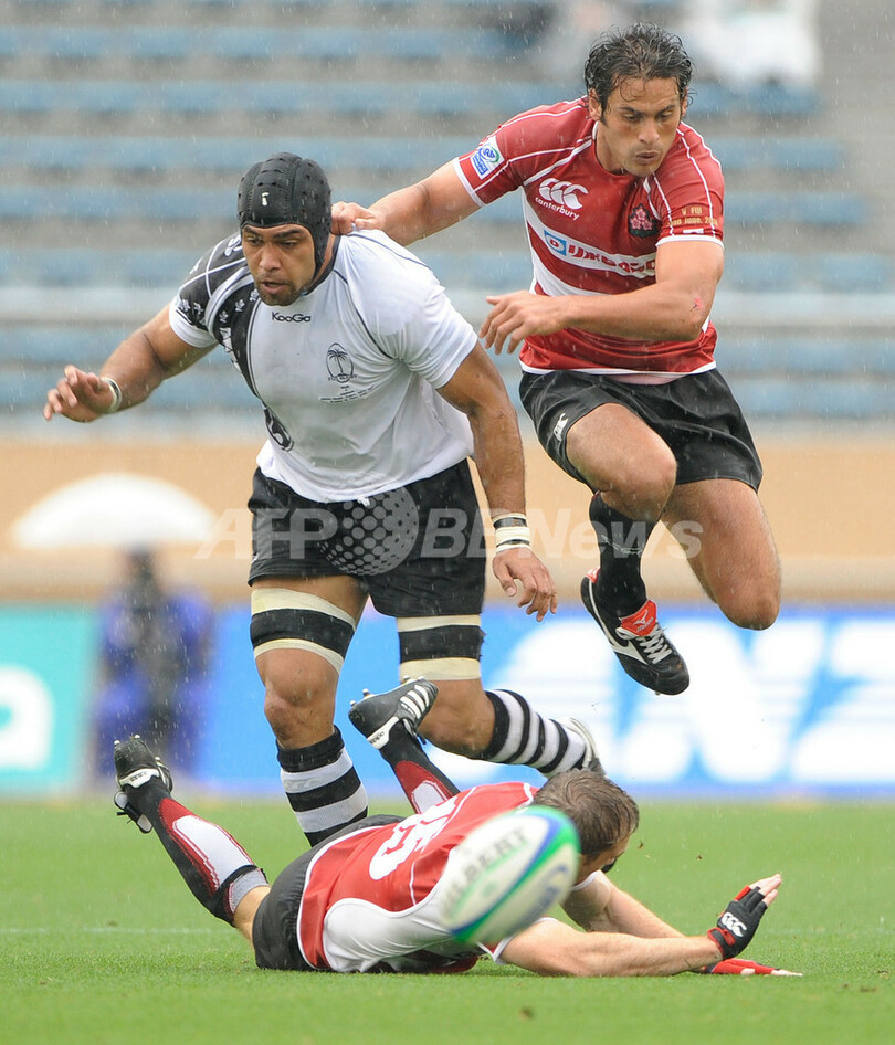 スポーツ ラグビー 日本 パシフィック・ネーションズ杯2敗目 2008年6月23日 8:18 発信地:東京 [ アジア・オセアニア 東京 ] このニュースをシェア ‹ › ❮ 7/9 ❯ 日本のショーン・ウェブ(%%Shaun Webb%%)やハレ・マキリ(%%Hare Makiri%%、右)と競り合うフィジーのネタニ・タレイ(%%Netani Talei%%)。(2008年6月22日撮影)(c)AFP/TORU YAMANAKA 画像作成中 ! 【6月23日 AFP】ラグビー、IRBパシフィック・ネーションズカップ2008(IRB Pacific Nations Cup 2008)日本対フィジー。試合は日本が12-24でフィジーに敗れ、日本は通算成績を1勝2敗とした。(c)AFP ラグビー 一覧へ> メディア・報道関係・法人の方向け 写真・動画 購入のお問合せ>