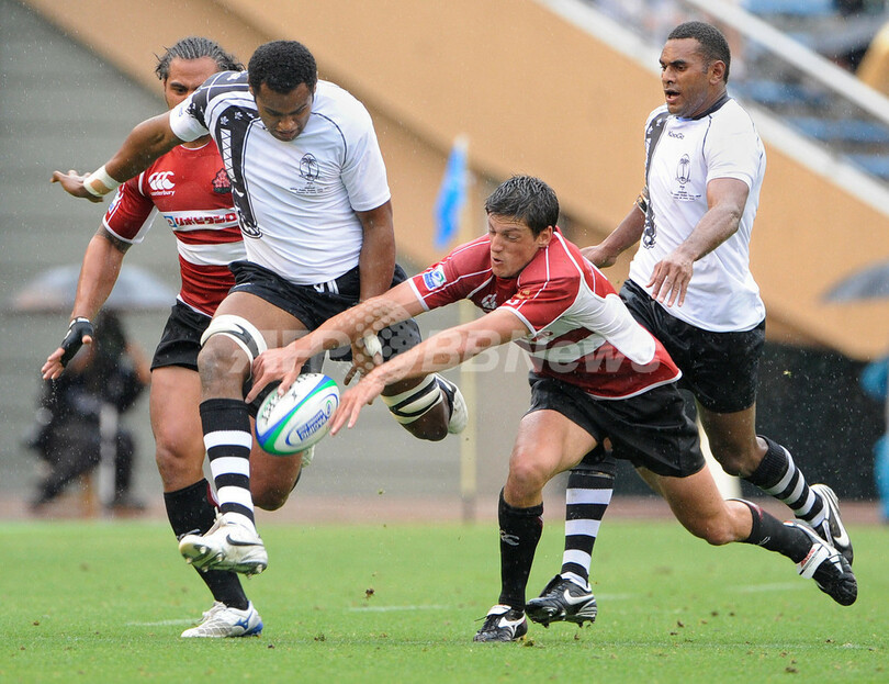 スポーツ ラグビー 日本 パシフィック・ネーションズ杯2敗目 2008年6月23日 8:18 発信地:東京 [ アジア・オセアニア 東京 ] このニュースをシェア ‹ › ❮ 3/9 ❯ フィジーのサイロシ・ランボナンギザ(%%Sailosi Rabonaqica%%、左2)と競り合う日本のジェームス・アレジ(%%James Arlidge%%、右2)。(2008年6月22日撮影)(c)AFP/TORU YAMANAKA 画像作成中 ! 【6月23日 AFP】ラグビー、IRBパシフィック・ネーションズカップ2008(IRB Pacific Nations Cup 2008)日本対フィジー。試合は日本が12-24でフィジーに敗れ、日本は通算成績を1勝2敗とした。(c)AFP ラグビー 一覧へ> メディア・報道関係・法人の方向け 写真・動画 購入のお問合せ>