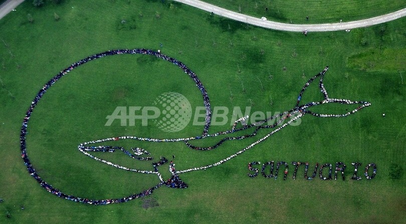 また、開幕前日には、サンティアゴ市内の公園に集まった約2000人が巨大なクジラを形作り、商業捕鯨の一時停止維持を訴えた。