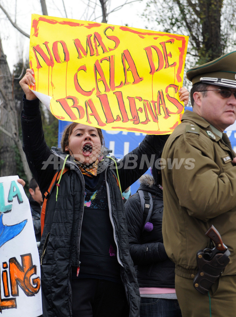 また、開幕前日には、サンティアゴ市内の公園に集まった約2000人が巨大なクジラを形作り、商業捕鯨の一時停止維持を訴えた。