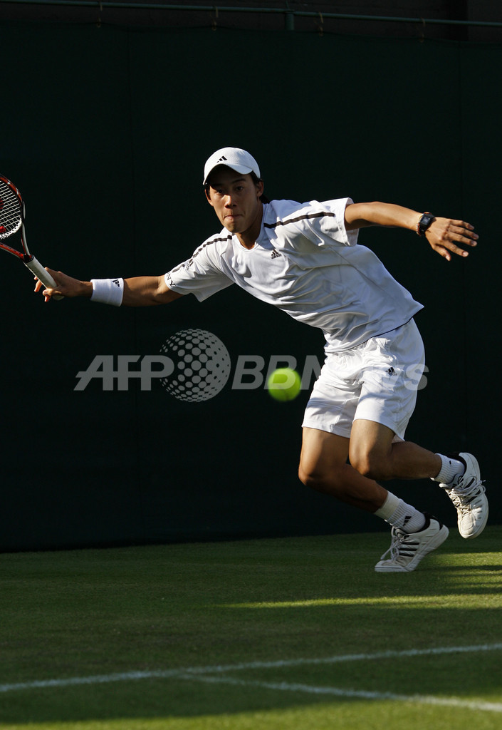 【6月24日 AFP】テニス、ウィンブルドン選手権2008(The Championships Wimbledon 2008)男子シングルス1回戦。日本の錦織圭(Kei Nishikori)は、フランスのマルク・ジケル(Marc Gicquel)と対戦。錦織はセットカウント1-1(6-4、5-7)で迎えた第3セット開始直後に腹筋の痛みを悪化させ途中棄権し、初戦敗退に終わった。