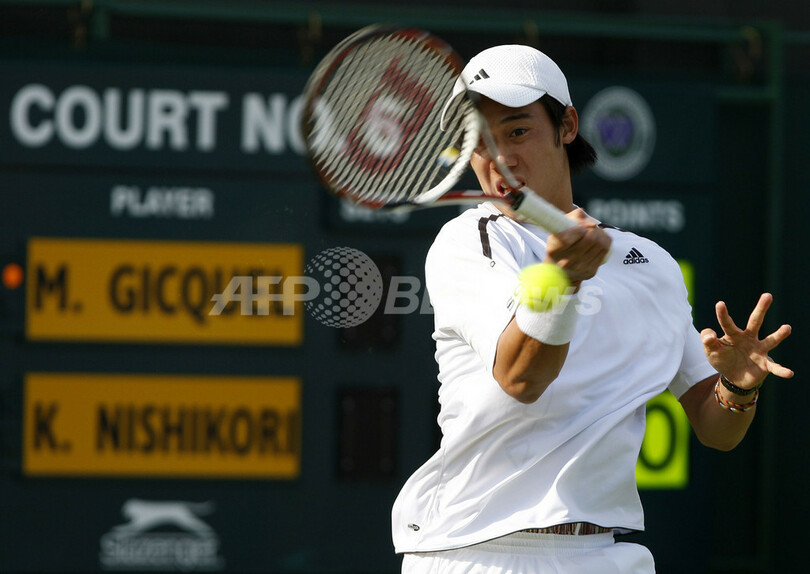 【6月24日 AFP】テニス、ウィンブルドン選手権2008(The Championships Wimbledon 2008)男子シングルス1回戦。日本の錦織圭(Kei Nishikori)は、フランスのマルク・ジケル(Marc Gicquel)と対戦。錦織はセットカウント1-1(6-4、5-7)で迎えた第3セット開始直後に腹筋の痛みを悪化させ途中棄権し、初戦敗退に終わった。