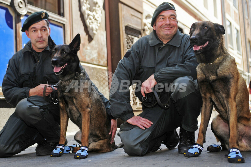 ニュース ライフ ベルギーの警察犬、青い靴はきパトロール 2008年6月25日 10:36 発信地:デュッセルドルフ/ドイツ [ ヨーロッパ ドイツ ] このニュースをシェア ‹ › ❮ 7/7 ❯ ドイツ西部デュッセルドルフ(Duesseldorf)で安全靴を履いてパトロールするベルギーシェパード(2008年6月24日撮影)。(c)AFP/DDP/CLEMENS BILAN 画像作成中 ! 【6月25日 AFP】ドイツ西部のデュッセルドルフ(Duesseldorf) で24日、「安全靴」を履いたベルギーシェパードの警察犬ブッチャー(Butcher)くん。サッカー欧州選手権(Euro 2008)などのイベント期間中、市街の道路には大量のガラスの破片がちらばることが予想されるため、警察犬はパトロールの仕事をする際、足を保護することを目的にこうした靴をはくのだという。(c)AFP ライフ 一覧へ> メディア・報道関係・法人の方向け 写真・動画 購入のお問合せ>