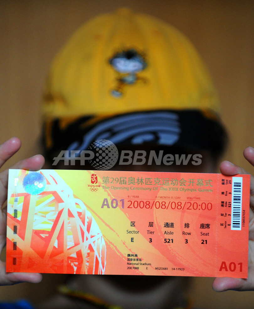 五輪 北京五輪開会式チケット、入手できる人はわずか4.7% 2008年6月25日 12:09 発信地:北京/中国 [ 中国・台湾 中国 ] このニュースをシェア 中国・北京(Beijing)で、8月8日に開催される北京五輪開会式のチケットを見せる中国人女性(2008年6月24日撮影)。(c)AFP/GOH CHAI HIN 【6月25日AFP】中国国営メディアによると、北京五輪チケットの中で最も人気の高い開会式(8月8日開催)に申し込みが殺到し、これまでに入手できたのは申込者全体のたった4.7%という事態になっている。インターネット上では違法に転売され、最高で20倍もの値段がついているという。(c)AFP 五輪 一覧へ> メディア・報道関係・法人の方向け 写真・動画 購入のお問合せ>
