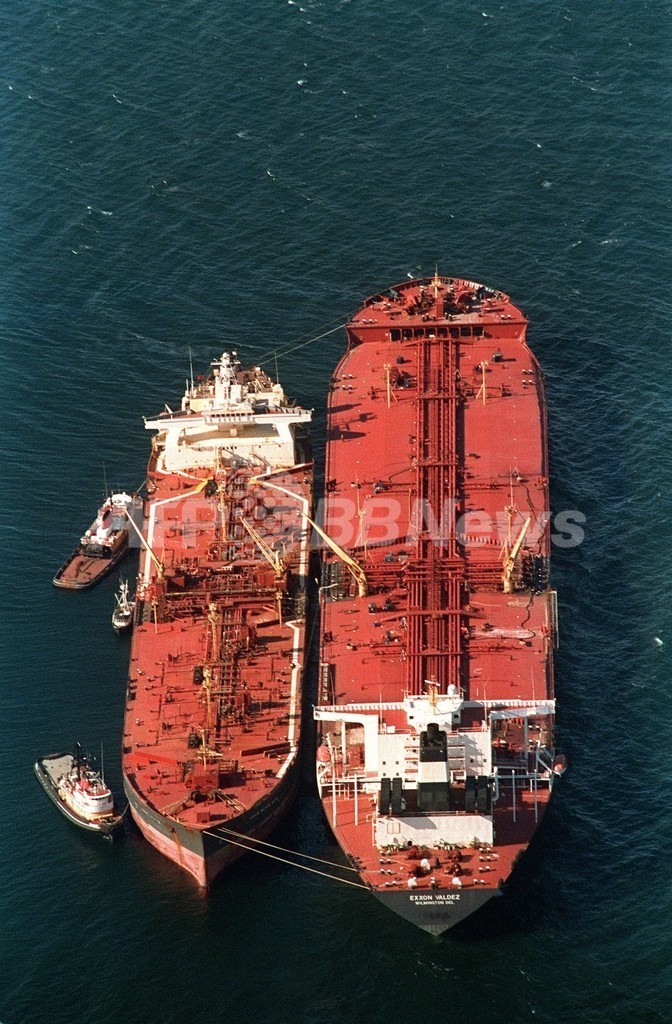 エクソン・バルディーズ号の原油流出事故は89年3月24日、米アラスカ(Alaska)州プリンス・ウィリアム湾(Prince William Sound)で同号が座礁、原油1100万ガロンが流出し、周辺水域が汚染されたもの。米国史上最悪の原油流出事故となり、エクソンモービルは事故後、約21億ドル(約2300億円)をかけて汚染除去を行い、漁民や地元住民に3億ドル(約320億円)以上の補償金を支払った。(c)AFP
