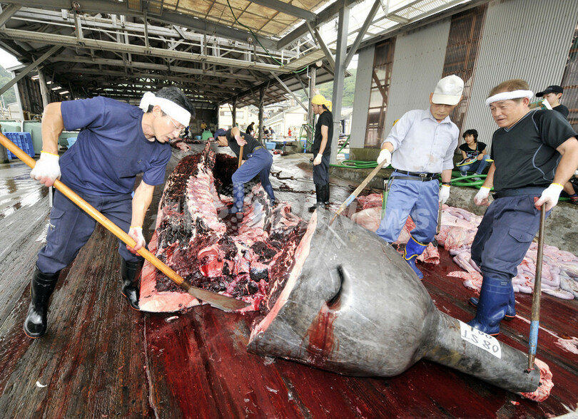 ニュース 環境・科学 ツチクジラ捕鯨解禁、南房総市で初水揚げ 2008年6月26日 8:26 発信地:千葉 [ アジア・オセアニア 千葉 ] このニュースをシェア ‹ › ❮ 14/15 ❯ 南房総市の和田漁港で、捕獲解禁後に初水揚げされ解体されたツチクジラ(2008年6月25日撮影)。(c)AFP/YOSHIKAZU TSUNO 画像作成中 ! 【6月26日 AFP】ツチクジラ(Bottlenose whale)の捕獲が解禁となった25日、南房総市の和田漁港で体長約10メートルのツチクジラの解体が行われた。和田の海域は、公式の商業捕鯨を許可されている漁港4つのうちの1つ。国際捕鯨委員会(IWC)の規制対象外であるツチクジラの捕獲が認められている。(c)AFP 環境・科学 一覧へ> メディア・報道関係・法人の方向け 写真・動画 購入のお問合せ>