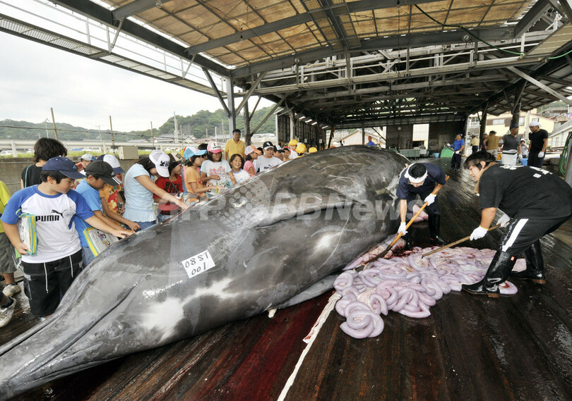 ニュース 環境・科学 ツチクジラ捕鯨解禁、南房総市で初水揚げ 2008年6月26日 8:26 発信地:千葉 [ アジア・オセアニア 千葉 ] このニュースをシェア ‹ › ❮ 4/15 ❯ 南房総市の和田漁港で、捕獲解禁後に初水揚げされ解体されたツチクジラ(2008年6月25日撮影)。(c)AFP/YOSHIKAZU TSUNO 画像作成中 ! 【6月26日 AFP】ツチクジラ(Bottlenose whale)の捕獲が解禁となった25日、南房総市の和田漁港で体長約10メートルのツチクジラの解体が行われた。和田の海域は、公式の商業捕鯨を許可されている漁港4つのうちの1つ。国際捕鯨委員会(IWC)の規制対象外であるツチクジラの捕獲が認められている。(c)AFP 環境・科学 一覧へ> メディア・報道関係・法人の方向け 写真・動画 購入のお問合せ>