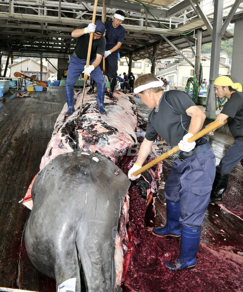 ニュース 環境・科学 ツチクジラ捕鯨解禁、南房総市で初水揚げ 2008年6月26日 8:26 発信地:千葉 [ アジア・オセアニア 千葉 ] このニュースをシェア ‹ › ❮ 3/15 ❯ 南房総市の和田漁港で、捕獲解禁後に初水揚げされ解体されたツチクジラ(2008年6月25日撮影)。(c)AFP/YOSHIKAZU TSUNO 画像作成中 ! 【6月26日 AFP】ツチクジラ(Bottlenose whale)の捕獲が解禁となった25日、南房総市の和田漁港で体長約10メートルのツチクジラの解体が行われた。和田の海域は、公式の商業捕鯨を許可されている漁港4つのうちの1つ。国際捕鯨委員会(IWC)の規制対象外であるツチクジラの捕獲が認められている。(c)AFP 環境・科学 一覧へ> メディア・報道関係・法人の方向け 写真・動画 購入のお問合せ>