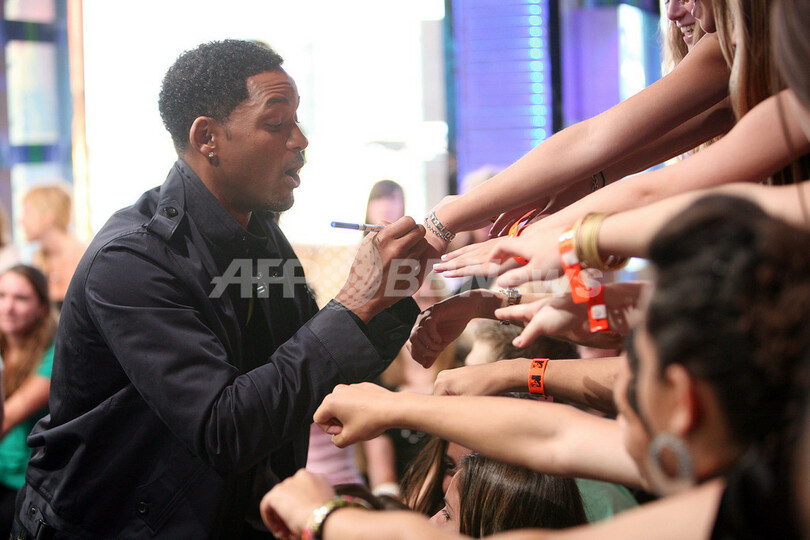 【6月26日 AFP】女優のシャーリーズ・セロン(Charlize Theron)、俳優のウィル・スミス(Will Smith)、ジェイソン・ベイトマン(Jason Bateman)が24日、ニューヨーク(New York)のタイムズ・スクエア・スタジオ(Times Square Studios)で行われたMTVの音楽情報番組「Total Request Live」に出演した。(c)AFP/Getty Images