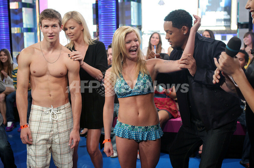 【6月26日 AFP】女優のシャーリーズ・セロン(Charlize Theron)、俳優のウィル・スミス(Will Smith)、ジェイソン・ベイトマン(Jason Bateman)が24日、ニューヨーク(New York)のタイムズ・スクエア・スタジオ(Times Square Studios)で行われたMTVの音楽情報番組「Total Request Live」に出演した。(c)AFP/Getty Images
