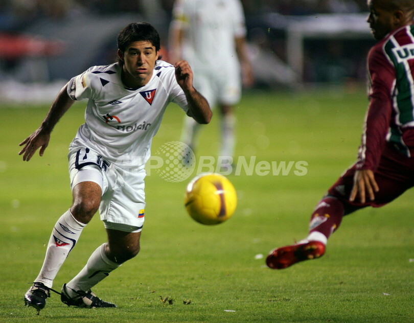 スポーツ サッカー リーガ・デ・キト リベルタドーレス杯決勝でフルミネンセに先勝 2008年6月26日 16:20 発信地:キト/エクアドル [ 中南米 エクアドル ] このニュースをシェア ‹ › ❮ 2/5 ❯ ボールを追うリーガ・デ・キトのクラウディオ・ビエレル(%%Claudio Bieler%%、左)。(2008年6月25日撮影)(c)AFP/PABLO COZZAGLIO 画像作成中 ! 【6月26日 AFP】サッカー、リベルタドーレス杯2008(Copa Libertadores de America 2008)決勝、リーガ・デ・キト(LDU Quito、エクアドル)対フルミネンセ(Fluminense、ブラジル)、第1戦。試合はリーガ・デ・キトが4-2でフルミネンセを下し、リーガ・デ・キトがホームでの初戦を白星で飾った。(c)AFP サッカー 一覧へ> メディア・報道関係・法人の方向け 写真・動画 購入のお問合せ>