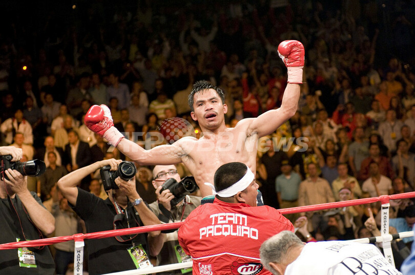 【6月29日 AFP】ボクシング、WBC世界ライト級タイトルマッチ12回戦。挑戦者のマニー・パッキャオ(Manny Pacquiao、フィリピン)は、王者のデビッド・ディアス(David Diaz、米国)と対戦。パッキャオは9ラウンド2分24秒でKO勝ちを収め、新王者に輝いた。