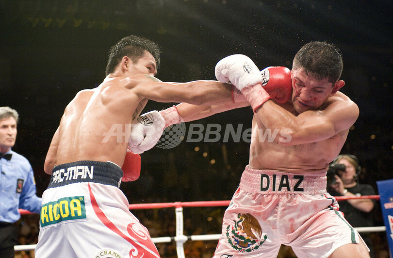 【6月29日 AFP】ボクシング、WBC世界ライト級タイトルマッチ12回戦。挑戦者のマニー・パッキャオ(Manny Pacquiao、フィリピン)は、王者のデビッド・ディアス(David Diaz、米国)と対戦。パッキャオは9ラウンド2分24秒でKO勝ちを収め、新王者に輝いた。