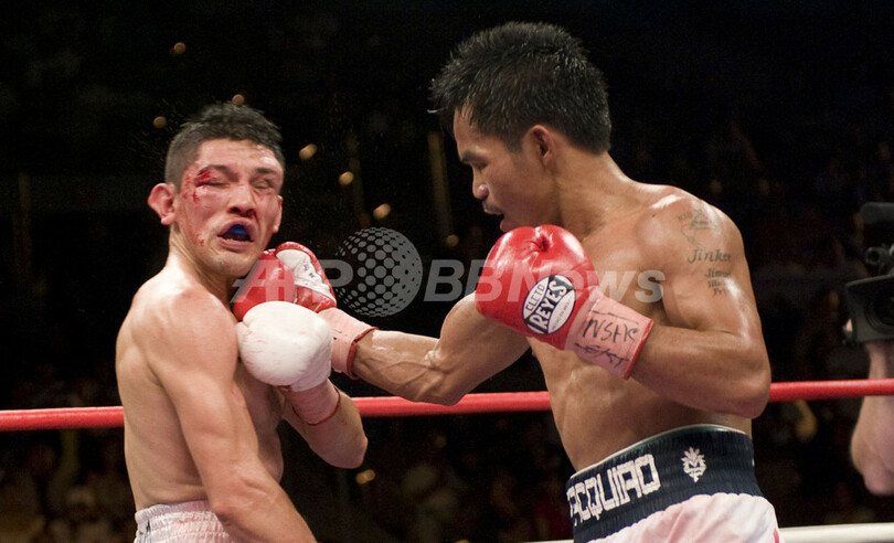 【6月29日 AFP】ボクシング、WBC世界ライト級タイトルマッチ12回戦。挑戦者のマニー・パッキャオ(Manny Pacquiao、フィリピン)は、王者のデビッド・ディアス(David Diaz、米国)と対戦。パッキャオは9ラウンド2分24秒でKO勝ちを収め、新王者に輝いた。