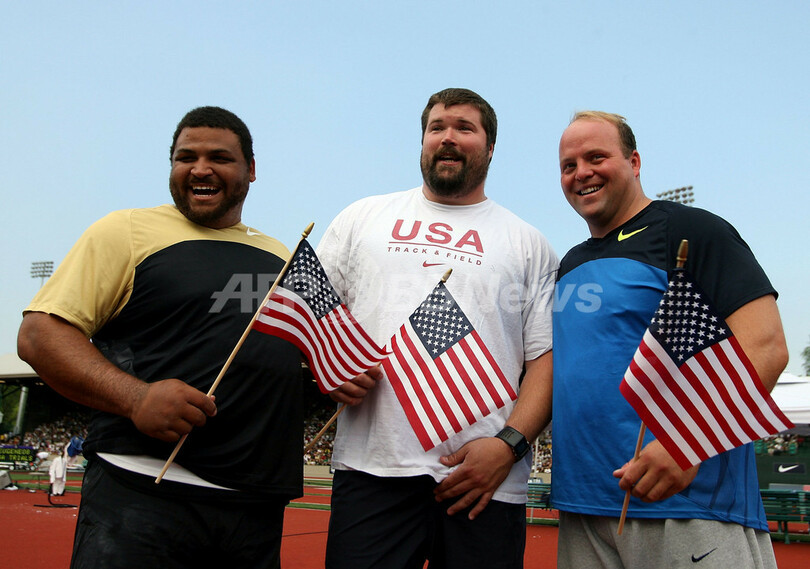 【6月29日 AFP】陸上、全米選手権(USA Outdoor Track & Field Championships)兼北京五輪米国代表選考会(US Olympic Team Trials - Track & Field)、男子砲丸投げ決勝。リース・ホッファ(Reese Hoffa)は、6投目で22メートル10センチを記録して優勝し、北京五輪代表入りを決めた。