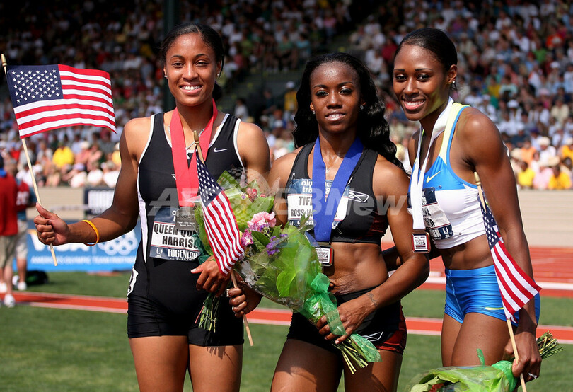 【6月30日 AFP】陸上、全米選手権(USA Outdoor Track & Field Championships)兼北京五輪米国代表選考会(US Olympic Team Trials - Track & Field)女子400メートルハードル決勝。ティファニー・ロス-ウィリアムズ(Tiffany Ross-Williams)は54秒03を記録して優勝を果たし五輪代表入りを決めた。また2位にはQueen Harrisonが、3位にはSheena Tostaが入り、それぞれ代表入りを果たした。(c)AFP/Getty Images