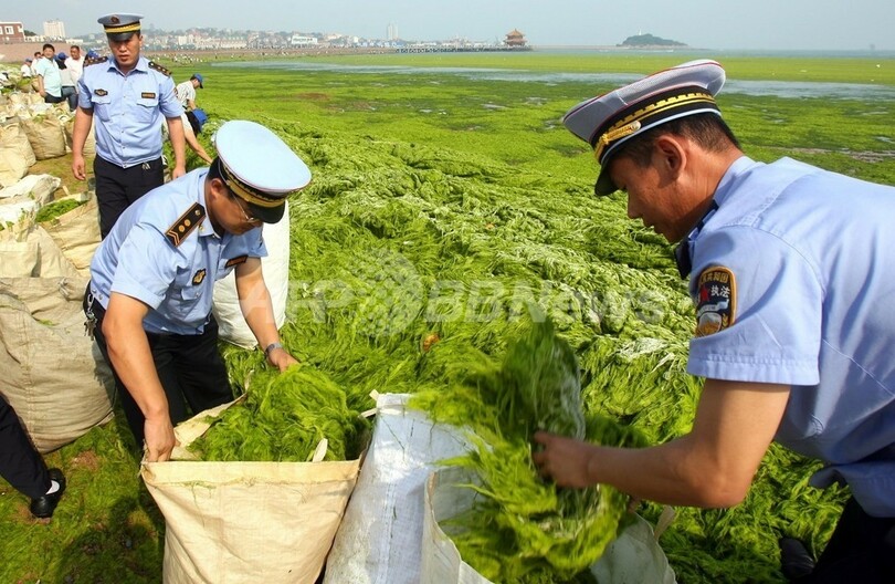 緑藻類は、青島沿岸から黄海(Yellow Sea)まで約1万3000平方キロの広範囲で発生しており、セーリング競技用の保護海域の約3割となる約16平方キロを覆っている。
