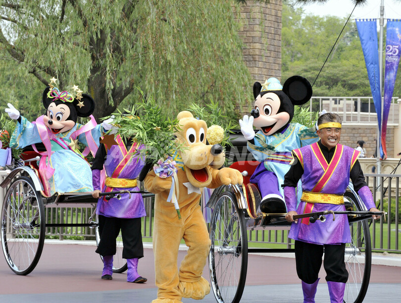 ニュース ライフ こぼれ話 彦星ミッキーと織姫ミニーが登場、東京ディズニーランド 2008年7月2日 1:56 発信地:千葉 [ アジア・オセアニア 千葉 ] このニュースをシェア ‹ › ❮ 2/3 ❯ 千葉県浦安市の東京ディズニーランド(Tokyo Disneyland)で、人力車に乗って来場者に手を振る、彦星と織姫に扮(ふん)したミッキーマウス(Mickey Mouse、右)とミニーマウス(Minnie Mouse、2008年7月1日撮影)。(c)AFP/Yoshikazu TSUNO 画像作成中 ! 【7月2日 AFP】千葉県浦安市の東京ディズニーランド(Tokyo Disneyland)で1日、七夕を前に彦星と織姫に扮(ふん)した、ミッキーマウス(Mickey Mouse)とミニーマウス(Minnie Mouse)が登場した。(c)AFP ライフ 一覧へ> メディア・報道関係・法人の方向け 写真・動画 購入のお問合せ>