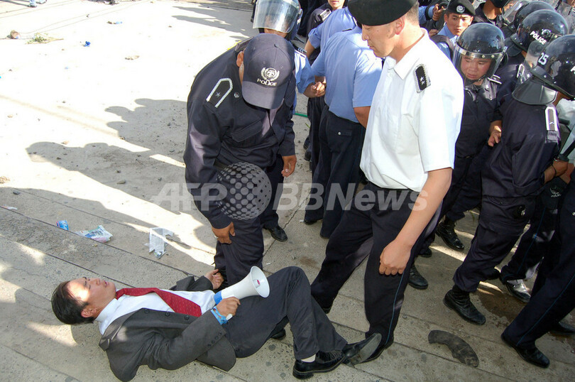 報道によると、この騒ぎで警察官30人、市民25人が負傷し病院へ搬送された。負傷者の中には日本人1人も含まれているという。(c)AFP/Michael Kohn