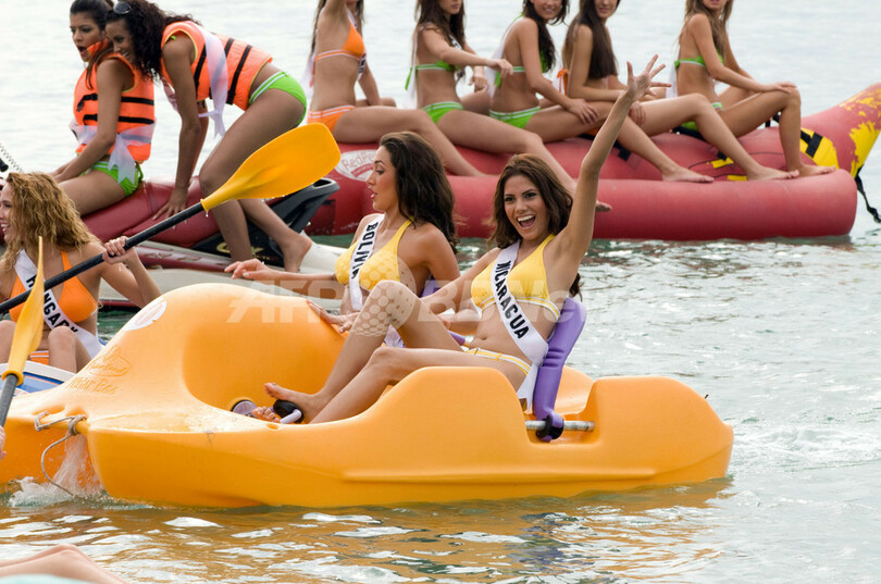 「2008ミス・ユニバース」選考会のオープニング映像、水着で撮影