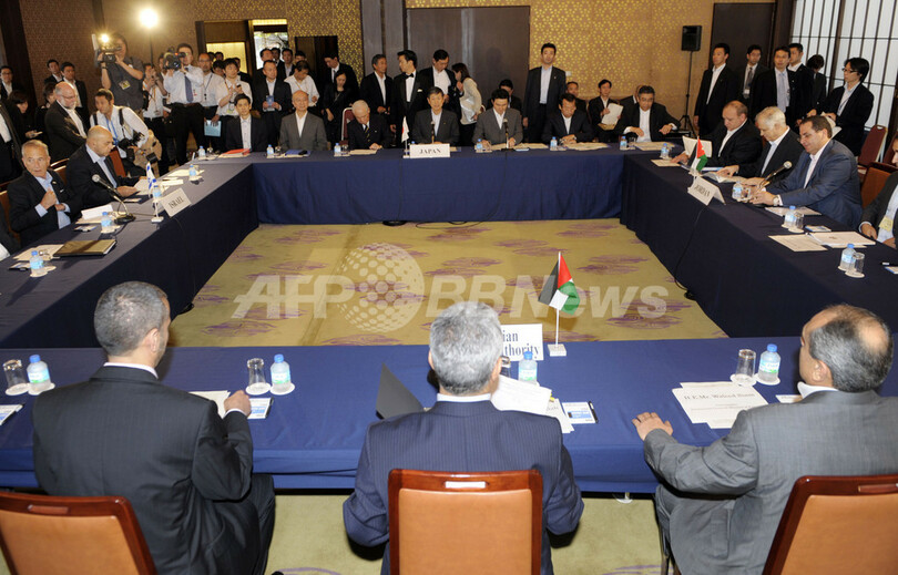【7月2日 AFP】日本の中東和平支援策に基づくイスラエル、ヨルダン、パレスチナ、日本による閣僚級会合が2日、都内で開かれ、日本主導でのパレスチナ自治区ヨルダン川西岸(West Bank)での共同事業開始で共同声明を発表した。