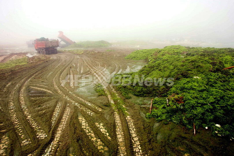 【7月3日 AFP】北京五輪を来月に控え、セーリング会場となる山東(Shandong)省青島(Qingdao)では、作業員1万人が投入され大量発生した藻類の除去作業が急ピッチで進められている。