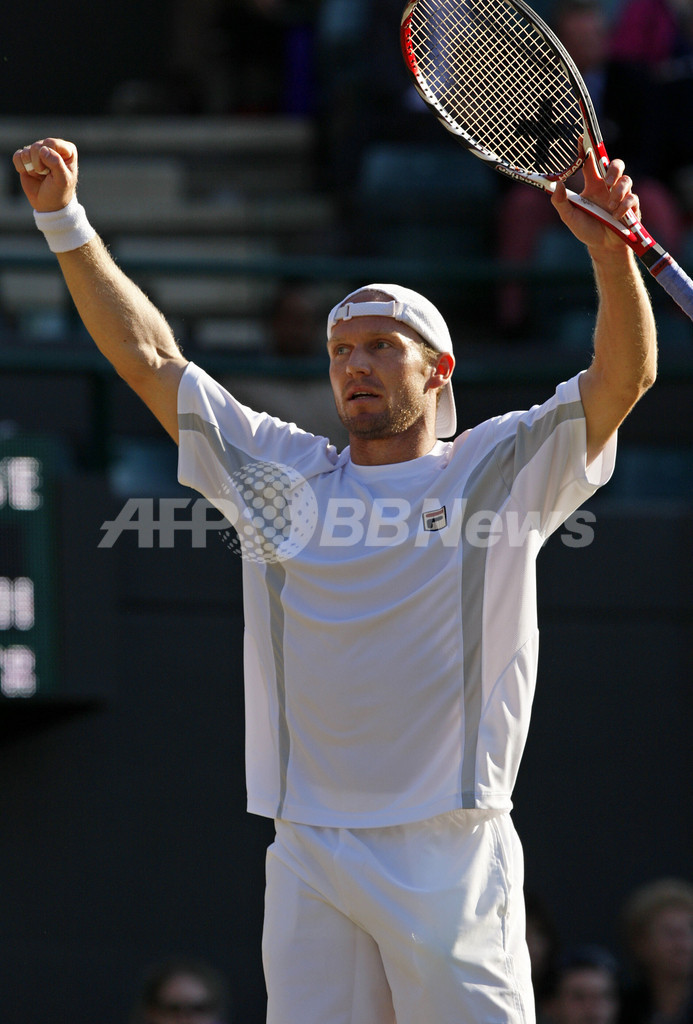 スポーツ テニス シュットラー クレマンを下し準決勝進出 2008年7月4日 9:36 発信地:ロンドン/英国 [ ヨーロッパ 英国 ] このニュースをシェア ‹ › ❮ 1/18 ❯ 勝利に歓喜するライナー・シュットラー。(2008年7月3日撮影)(c)AFP/ADRIAN DENNIS 画像作成中 ! 【7月4日 AFP】テニス、ウィンブルドン選手権2008(The Championships Wimbledon 2008)男子シングルス準々決勝。ドイツのライナー・シュットラー(Rainer Schuettler)は、フランスのアルノー・クレマン(Arnaud Clement)と対戦。シュットラーはセットカウント3-2(6-3、5-7、7-6、6-7、8-6)のフルセットの末クレマンを下し、準決勝進出を決めた。(c)AFP テニス 一覧へ> メディア・報道関係・法人の方向け 写真・動画 購入のお問合せ>