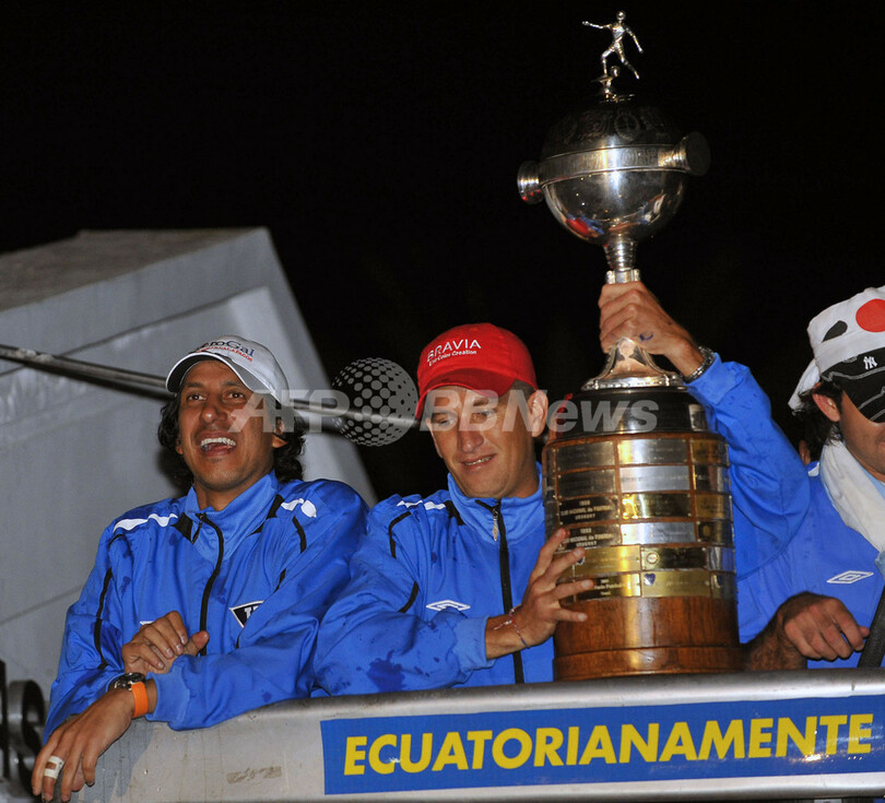 スポーツ サッカー リーガ・デ・キト 地元で凱旋パレードを行う 2008年7月4日 14:58 発信地:キト/エクアドル [ 中南米 エクアドル ] このニュースをシェア ‹ › ❮ 7/8 ❯ 凱旋パレードで笑顔を見せるリーガ・デ・キトのホセ・セバジョス(%%Jose Cevallos%%、左)とパトリシオ・ウルティア(%%Patricio Urrutia%%)。(2008年7月3日撮影)(c)AFP/Rodrigo Buendia 画像作成中 ! 【7月4日 AFP】サッカー、リベルタドーレス杯2008(Copa Libertadores de America 2008)を初制覇したリーガ・デ・キト(LDU Quito)がキト(Quito)に凱旋し、サポーターに優勝を報告した。(c)AFP サッカー 一覧へ> メディア・報道関係・法人の方向け 写真・動画 購入のお問合せ>