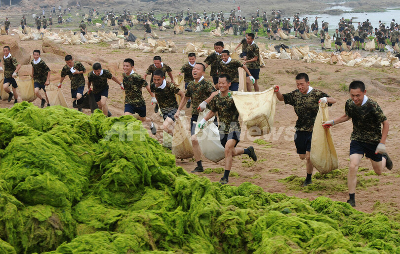 【7月4日 AFP】中国・山東(Shandong)省青島(Qingdao)の北京五輪セーリングコースで藻類が大量発生している問題で、兵士や教師から地元ボランティアまであらゆる人々が参加して藻の除去作業が続けられている。