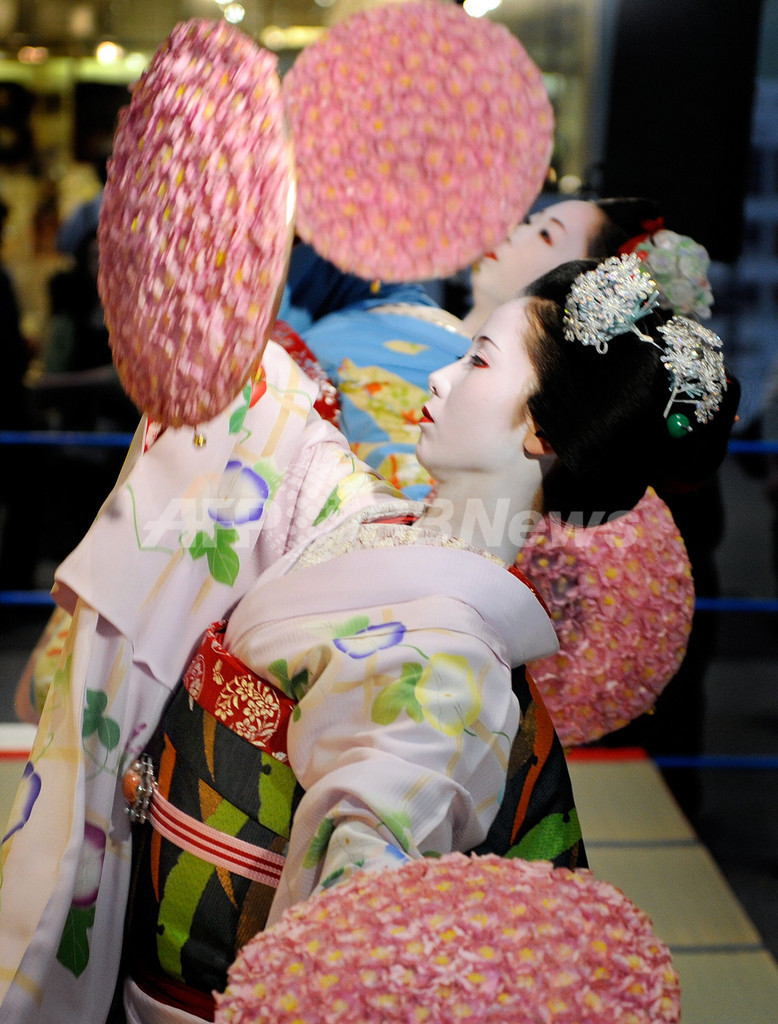 ニュース ライフ 丸の内で京都の舞妓さんが舞う 2008年7月4日 22:53 発信地:東京 [ アジア・オセアニア 東京 ] このニュースをシェア ‹ › ❮ 6/7 ❯ 都内丸の内で行われたイベントで、舞いを披露する京都祇園の舞妓たち(2008年7月4日撮影)。(c)AFP/Toru YAMANAKA 画像作成中 ! 【7月4日 AFP】都内のビジネス街丸の内で、京都花街の伝統文化を紹介するイベントがあり、京都祇園の舞妓さんが舞いを披露した。(c)AFP ライフ 一覧へ> メディア・報道関係・法人の方向け 写真・動画 購入のお問合せ>