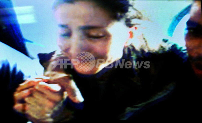 その後ビデオは、軍のヘリコプターの中で手錠が外され、解放されたことを知らされると涙を流して喜ぶ元人質たちの姿を映し出した。