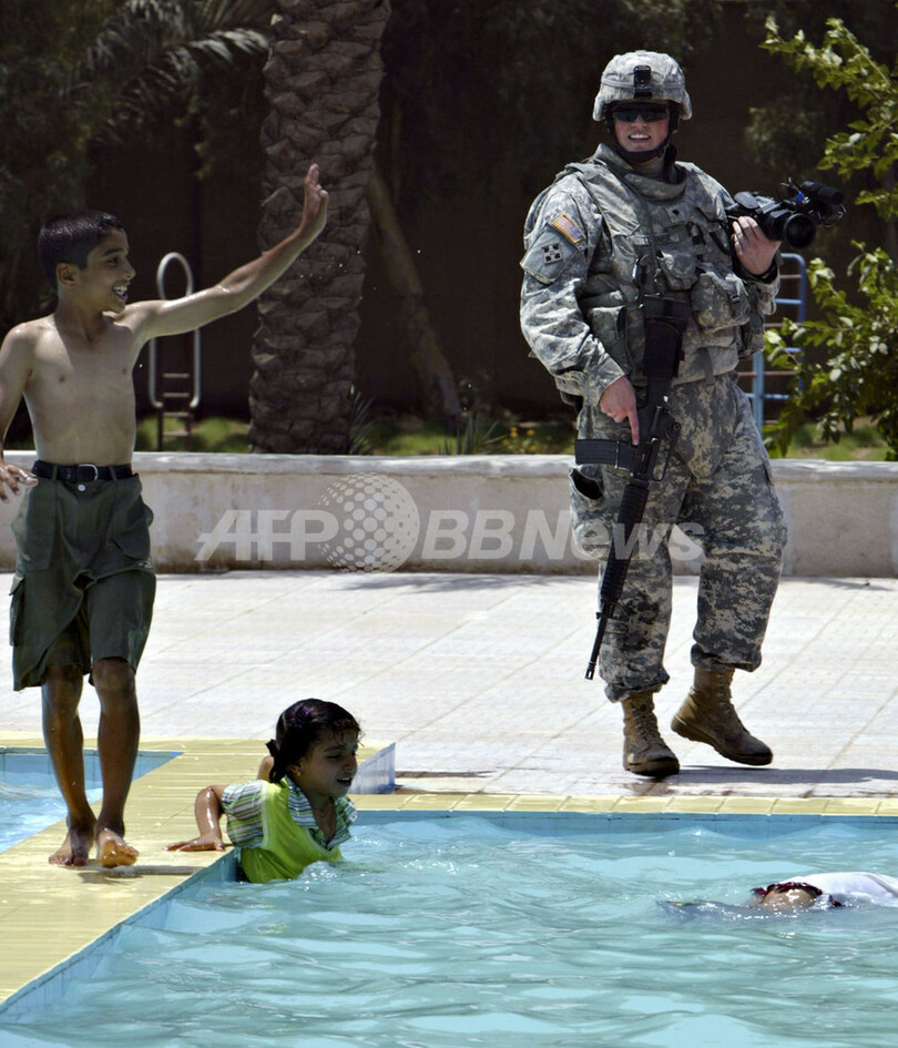 ニュース 戦争・紛争 公園のプールが営業再開、バグダッド 2008年7月6日 19:55 発信地:バグダッド/イラク [ 中東・北アフリカ イラク ] このニュースをシェア ‹ › ❮ 2/4 ❯ イラク・バグダッド(Baghdad)のZawra公園のプールで遊ぶ子どもたちと、警備にあたる米兵(2008年7月5日撮影)。(c)AFP/ALI AL-SAADI 画像作成中 ! 【7月6日 AFP】平和が戻りつつあるイラクのバグダッド(Baghdad)で5日、Zawra公園のプールが再開した。 銃を持ったイラク駐留米軍が警備する中、子どもたちはプールに飛込んで暑さをしのいだ。(c)AFP 戦争・紛争 一覧へ> メディア・報道関係・法人の方向け 写真・動画 購入のお問合せ>