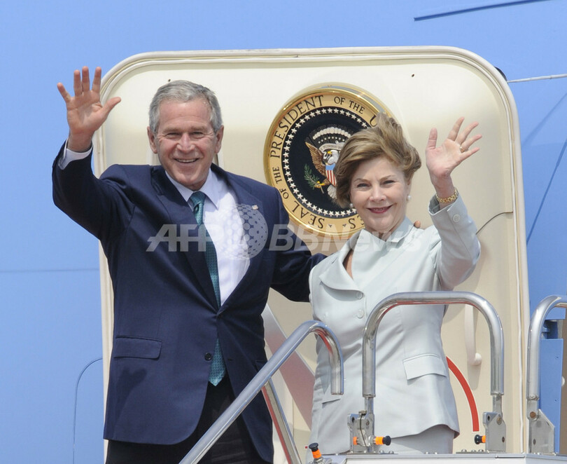 【7月6日 AFP】(写真追加)米国のジョージ・W・ブッシュ(George W. Bush)大統領は6日、7日に開幕する北海道洞爺湖サミット(G8 Hokkaido Toyako Summit)に出席するため日本に到着した。