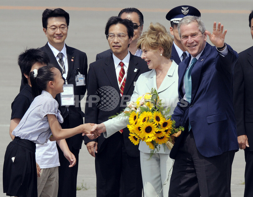 ブッシュ大統領は、大統領専用機エアフォースワン(Air Force One)で午後1時20分に北海道の新千歳空港に到着した。ブッシュ大統領は同日福田康夫(Yasuo Fukuda)首相と会談する。