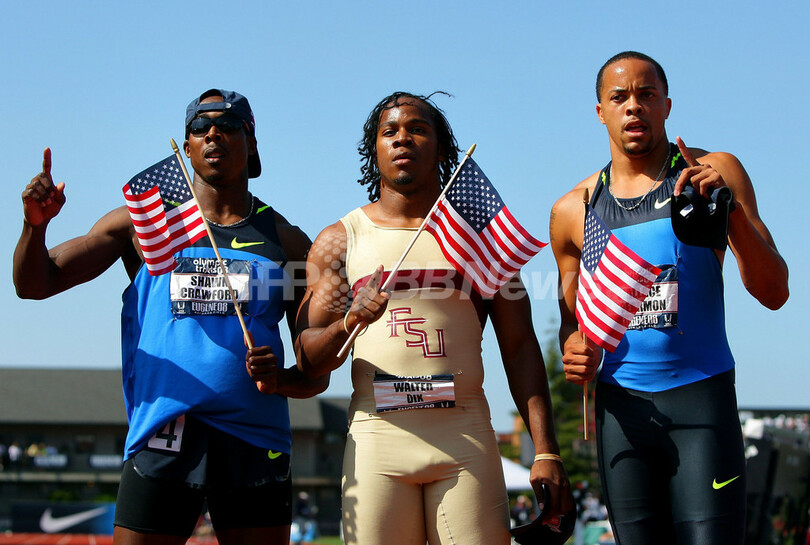 【7月7日 AFP】陸上、全米選手権(USA Outdoor Track & Field Championships)兼北京五輪米国代表選考会(US Olympic Team Trials - Track & Field)男子200メートル決勝。ウォルター・ディックス(Walter Dix)は、19秒86を記録して優勝を果たし、100メートルに続いて五輪代表入りを決めた。また2位にはショーン・クロフォード(Shawn Crawford)が、3位にはウォレス・スピアーモン(Wallace Spearmon)が入り、それぞれ代表入りを果たした。(c)AFP/Getty Images