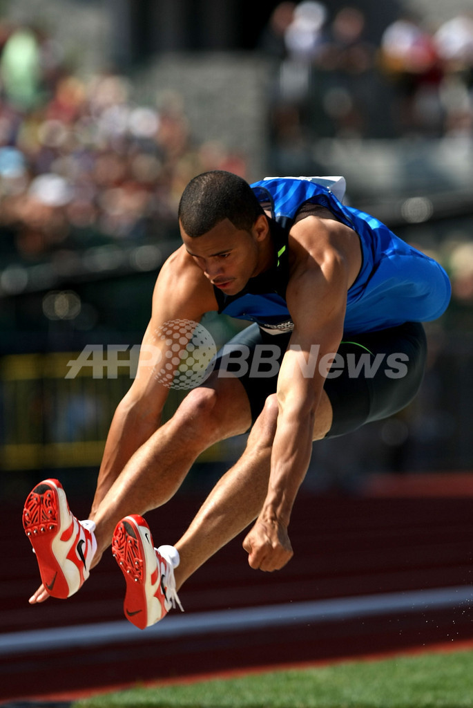 五輪 ウィルソン 男子三段跳び制す 2008年7月7日 17:29 発信地:ユージン/米国 [ 北米 米国 ] このニュースをシェア 全米選手権兼北京五輪米国代表選考会で男子三段跳び決勝に臨むアーリク・ウィルソン。(2008年7月6日撮影)(c)AFP/Getty Images/Jonathan Ferrey 【7月7日 AFP】陸上、全米選手権(USA Outdoor Track & Field Championships)兼北京五輪米国代表選考会(US Olympic Team Trials - Track & Field)男子三段跳び決勝。アーリク・ウィルソン(Aarik Wilson)は、17メートル43記録して優勝を果たし、五輪代表入りを決めた。(c)AFP/Getty Images 五輪 一覧へ> メディア・報道関係・法人の方向け 写真・動画 購入のお問合せ>
